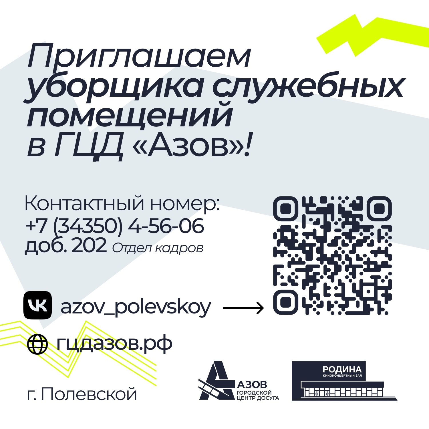 💼🎥Городской центр досуга «Азов» приглашает кандидата на должность УБОРЩИКА СЛУЖЕБНЫХ ПОМЕЩЕНИЙ.